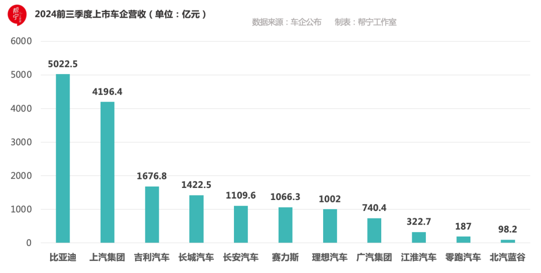 帮宁责任室统计了11家上市整车企业的前3个季度财报,其中,有6家盈利呈增长态势,鉴别是比亚迪、祯祥汽车、长城汽车、盼望汽车、赛力斯和江淮汽车。